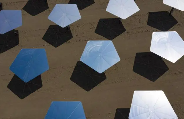 随着一些新的技术被逐步应用起来,太阳能集热电厂又从重新被注重了起来。比方太阳光反射镜的高精度调理、熔盐储能技术的应用等。反射镜能够依据太阳的不同位置不停的调整角度,保证最大效率的将太阳光反射到集热塔上。而集热塔里面装着熔融状态的盐,熔盐自身是一种高温传热和储热的介质,于是经过阳光不停的给熔盐加热,就能够将分散的太阳能贮存起来了。
